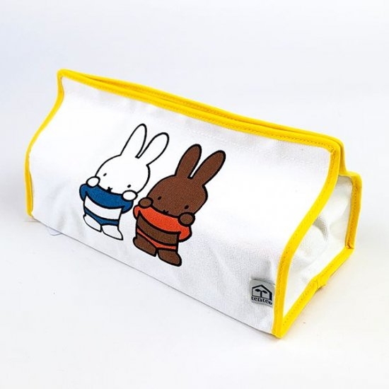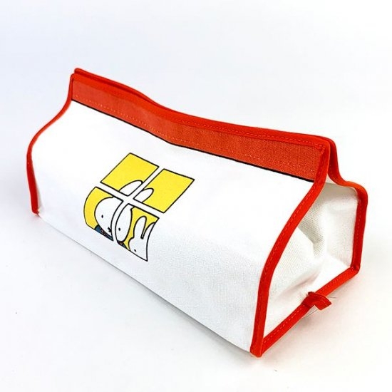 絵本でおなじみのミッフィーカラーの、ティッシュカバーが登場です。まるでおうちの中に居るようなデザインやミッフィーとメラニーの仲良しなデザインがほっこりします♪綿素材で軽いので、お部屋間の移動も楽々ですよ。
