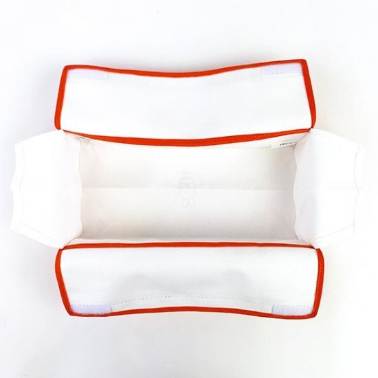 上部のマジックテープ部分を開いて、ティッシュを入れてくださいね。ボックスのまま入れることもできますし、ティッシュだけ入れることも可能です。