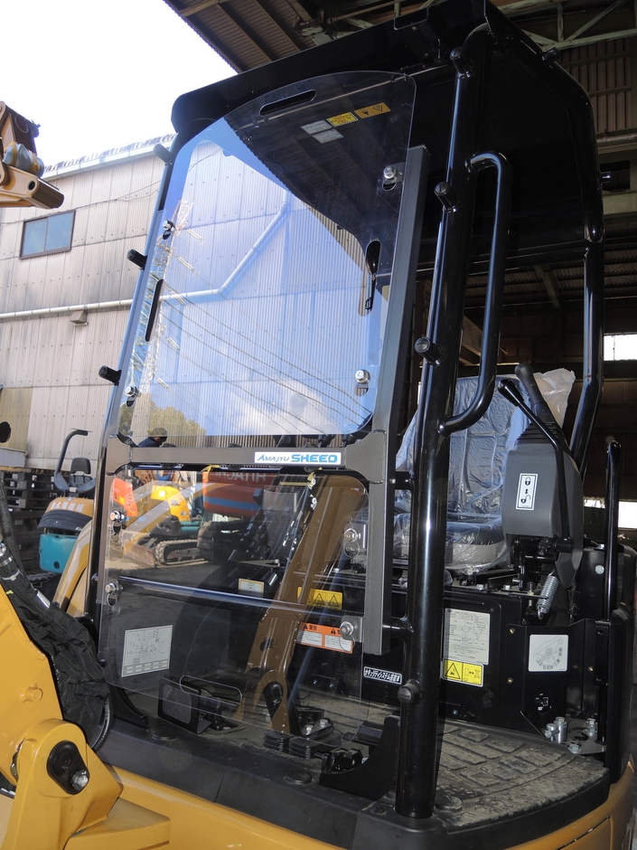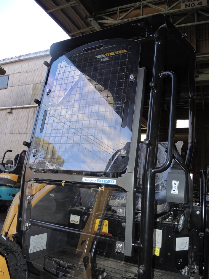 2)「SHEED(シード)」:工事現場で簡単に脱着が可能で、オペレーターを守るミニショベル用脱着式キャビンプロテクター ※実用新案登録第3218254号