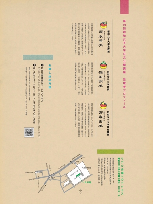 - 対面:昭和女子大学 8号館6階 オーロラホール(※定員に達したため締め切りました)