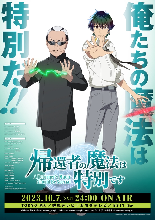 TVアニメ「帰還者の魔法は特別です」はTOKYO MXほか2023年10月7日(土)24:00より放送開始。また、dアニメストア 、U-NEXT、アニメ放題では2023年10月7日(土)24:30より先行配信開始。