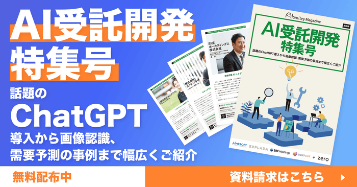 国内最大級のAIポータルメディア「AIsmiley」を運営する株式会社アイスマイリーは、AI導入推進の一環として、AI企業5社が事例、AI受託開発サービスのユースケースや製品の特長をまとめた「AI受託開発特集号」を2023年7月13日に公開しました。