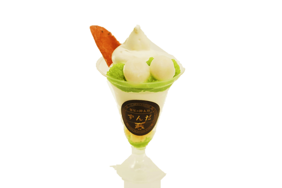 宮城県のソウルフードである「ずんだ」と、小松牧場の新鮮な生乳で作るソフトクリームが相性抜群です。