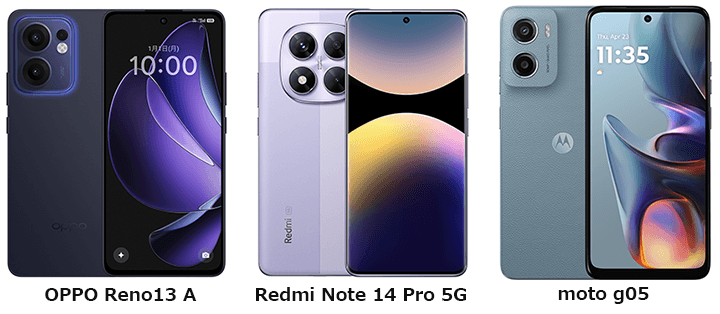 ビッグローブ株式会社(本社:東京都品川区、代表取締役社長:山田 靖久、以下 BIGLOBE)は、モバイルサービス「BIGLOBEモバイル」において、OPPO製スマートフォン「OPPO Reno13 A」、Xiaomi製スマートフォン「Redmi Note 14 Pro 5G」、モトローラ製スマートフォン「moto g05」の提供を2025年7月22日より開始いたします(注1)。