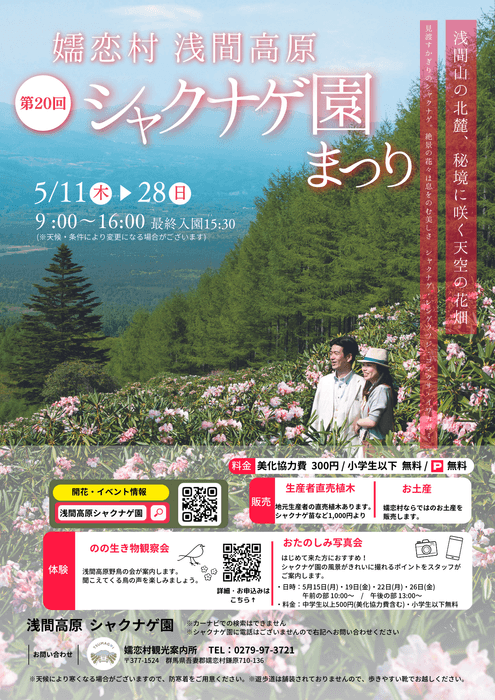 群馬県嬬恋村にて、5月11日(木)~28日(日)に第20回浅間高原シャクナゲ園まつりが開催されます!!