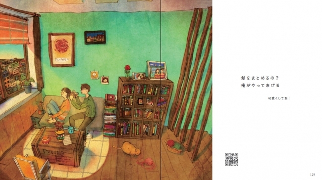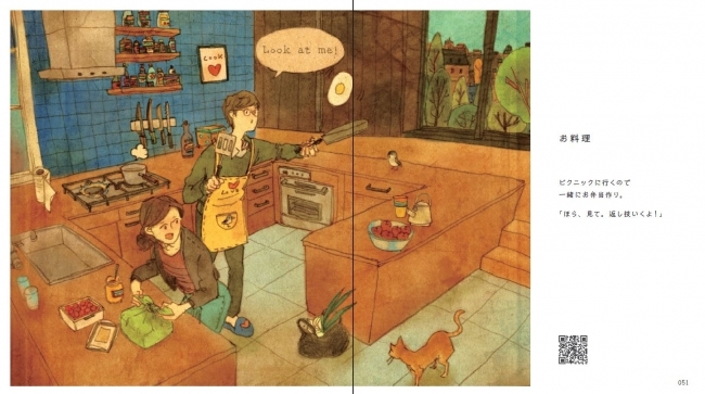 また、各ページに本書と連動したQRコードが掲載されており、リンク先ではそのイラストについてコメントを書き込めます。世界各国の言葉で書かれた感想を読むこともできるので、オンラインでも物語は続きます。オールカラーで上品なハードカバーの装丁なので、友人や大切な人へのプレゼントにも最適です。