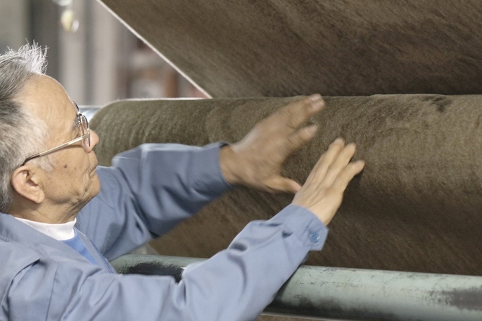 大阪泉大津の130年以上の歴史を持つ毛布産業の伝統と技術を背景に、「CALDO NIDO(カルドニード)」は熟練の起毛師による丁寧な仕上げにこだわっています。起毛・艶出し・毛揃えなど40工程以上におよぶ工程を経て、一枚一枚を仕上げています。