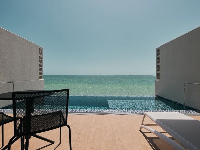 全98室中、1階の28室がプライベートプール付き。 水平線に溶け込むようなインフィニティプールの開放感を自室で味わえます。