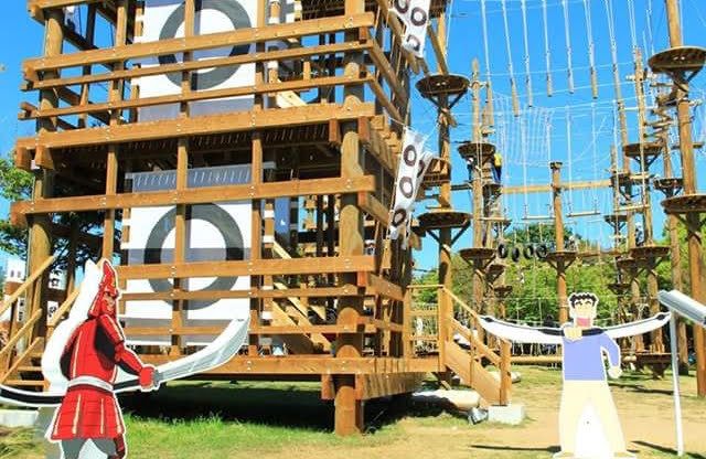 櫓がモチーフとなったアスレチックの中で甲冑を着て、まるで戦国時代にタイムスリップしたかのような「クレヨンしんちゃん」の世界観を満喫しよう!
