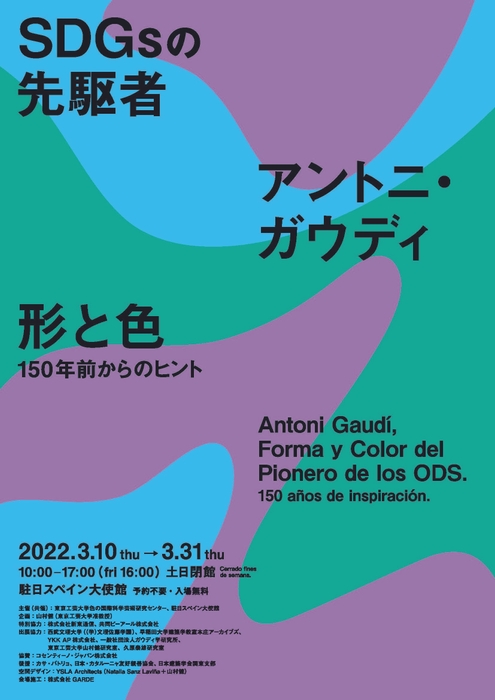東京工芸大学(学長:吉野弘章、所在地:神奈川県厚木市、以下 本学)色の国際科学芸術研究センターは、3月10日(木)から3月31日(木)まで、駐日スペイン大使館(東京都港区)で、展覧会「SDGsの先駆者アントニ・ガウディ 形と色 -150年前からのヒント-」(共催:駐日スペイン大使館)を開催します。