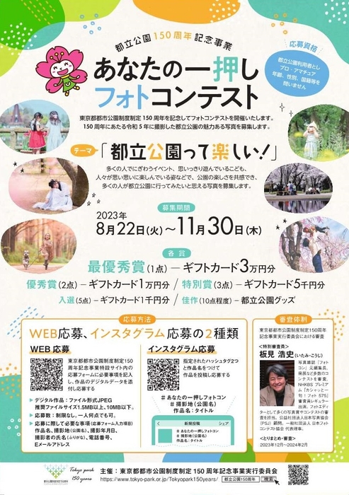 東京都都市公園制度制定150周年を記念してフォトコンテストを開催いたします。