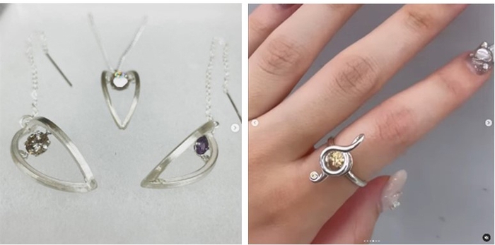 ほんの少しの角度の違いでも揺れ方や持続性にも影響が出てしまうため、デザインを考えると同時にいかに綺麗に見えるか、パーツをつける位置まで正確に計算する必要がありました。また、今回作るジュエリーは一つひとつが学生による手作業での制作だったため、石留めやパーツのロウ付けなどに苦労したと学生の皆さんは語っていました。
