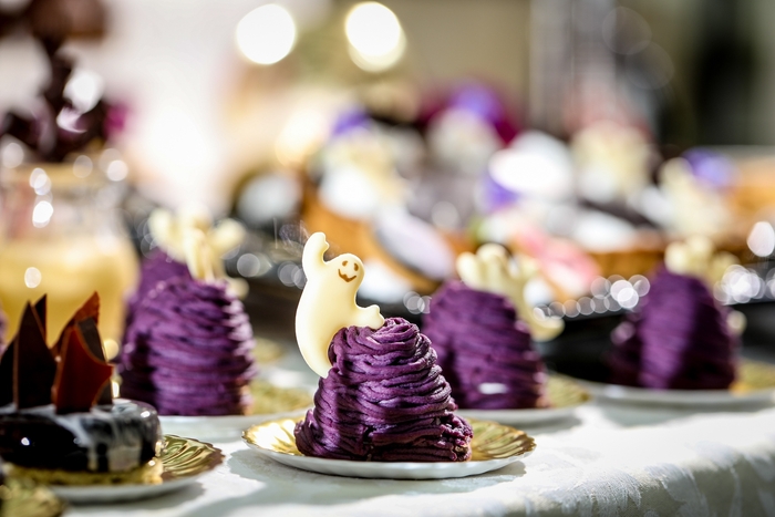 普段は夢があふれる幸せいっぱいの結婚式場が、悪戯好きなヴィランズの世界に染め上げられ、ウエディングパティシエが作る“ヴィランズ”をモチーフにしたデザート&軽食、約20種類をお好きなだけご堪能いただけます。フォトジェニックな空間で、カップルでも、ご家族でも、ご友人同士でもお楽しみいただけるハロウィンスイーツパーティーに是非お越しください。