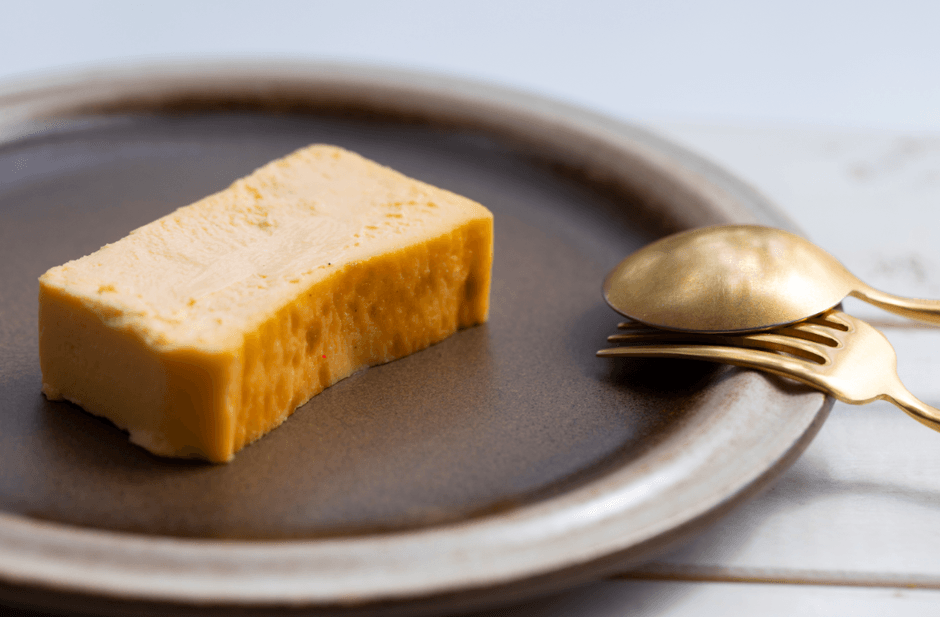 TAMAGOYAの専属パティシエが3年の歳月をかけて試行錯誤し、たどりついた渾身のチーズケーキです。TAMAGOYAの特徴である「日の出たまご」を使い、黄身の美味しさを最大限に引き立たせた味にたどりつきました。また、「日の出たまご」の黄身とチーズを混ぜ合わせ、口に入れた瞬間になめらかに溶けていく食感のチーズケーキに仕上がっています。TAMAGOYAの専属パティシエだからこそたどり着いたチーズケーキです。