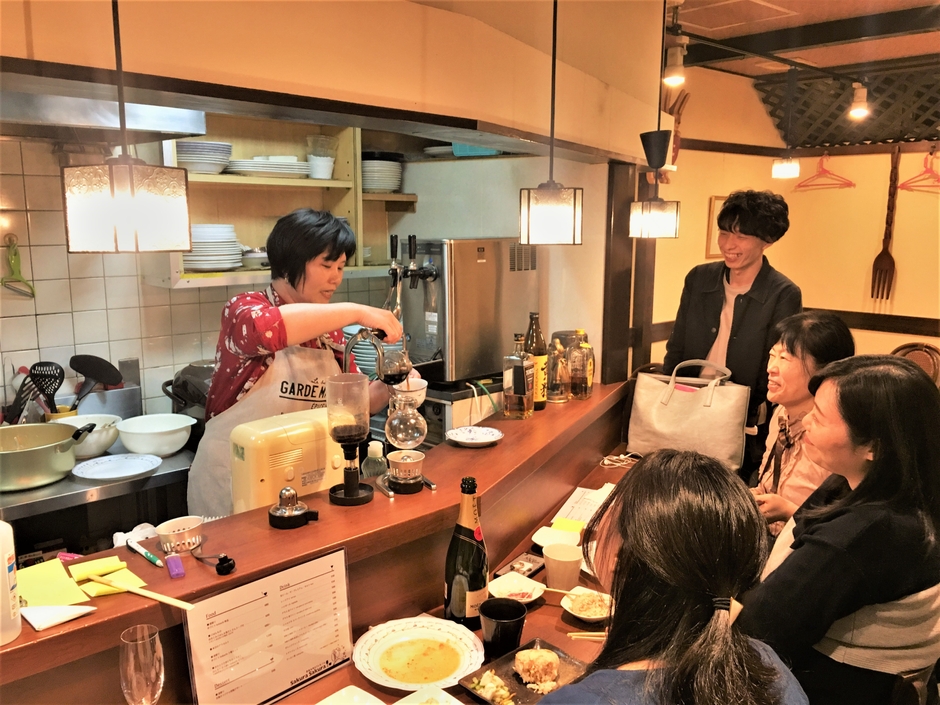 SakuraSakuraは、店主の出身地、京都の小料理屋であり、東京では珍しい京都小川珈琲の喫茶店でもあります。和食の師匠に従事した店主が繰り出す京の家庭料理、おばんざいとお酒、店主が幼少から慣れ親しんだ〆の京都小川珈琲が絶品です。