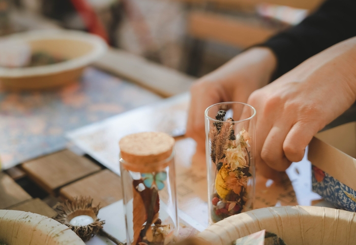 Wonderleafさんによるワークショップでは、子どもたちが小さな秋に触れ、工作を楽しみました。