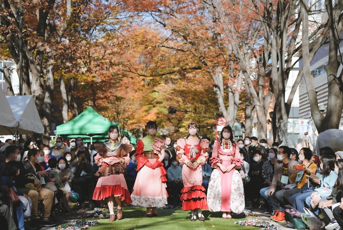ステージでは、都立農業高等学校服飾科によるファッションショーに始まり、4つのバンド/シンガーによる音楽がけやき並木に響き渡りました。