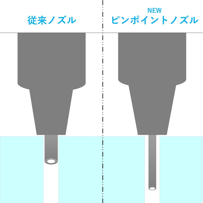 外径0.14mm・内径0.1mmの極細先端で、より「狭く」、より「深い」ピンポイントへの高精度塗布に特化