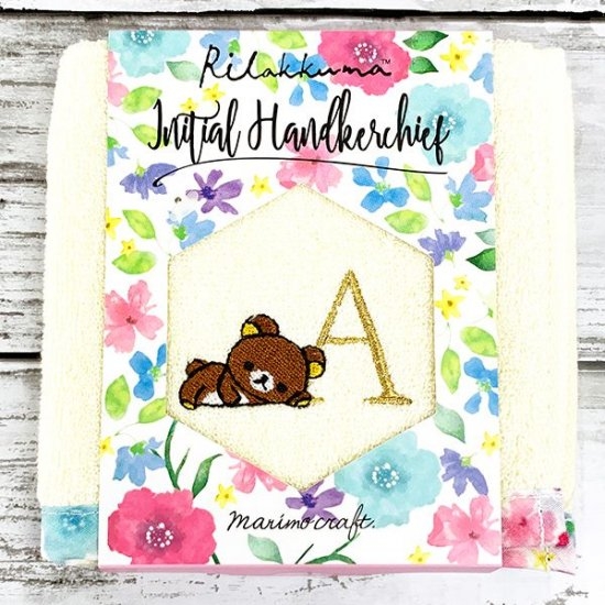 こちらがリラックマの花柄イニシャルハンドタオル。
