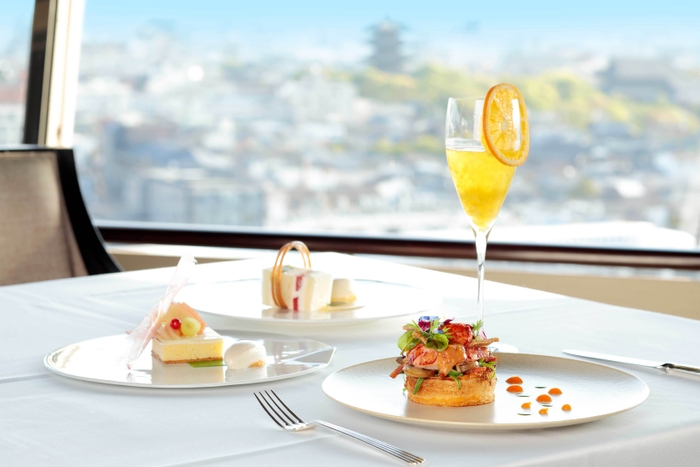 360度広がる古都の街並みや夜景を美しいフランス料理とともにお愉しみいただけます。