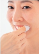 指のカーブが歯にフィットし、微妙な調整もしやすいのがポイント。とくにマスクと同じ不織布を使ったガーゼなら、歯へのダメージが少ないうえに、細かい繊維がネバネバとしたぬめり汚れもしっかりぬぐいとってくれます。