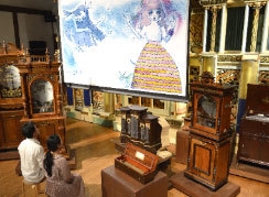 アーティストのイラストや映像に、オルゴールなどの自動演奏楽器の演奏を加えたライブ感あふれる上演スタイルを、当館では「オルゴールシアター」と称しています。これまで、版画、サンドアート、影絵などと共演しており、他にはない当館独自の企画としてシリーズ化しています。