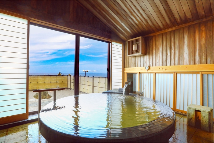 熱の湯と呼ばれる良質な温泉が自慢のPremium 汐美荘では2つの貸切風呂をご用意しております。天気のいい日は心地よい海風を感じながら、湯あみをお楽しみいただけます。