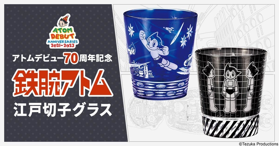 アトムの輝きしきデビュー70周年を記念して 江戸の美意識と職人技が光る2種類の江戸切子グラスが登場! プレミコから数量限定で販売開始
