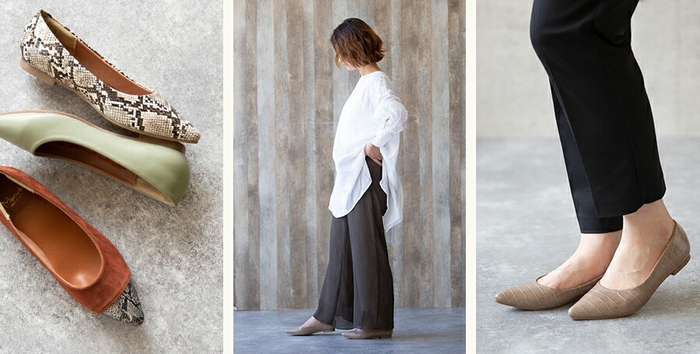 グレージュ、ピスタチオ、ツイード素材など、使いやすいニュアンスカラーが仲間入り。お仕事や、卒・入学式にスーツと合わせるのもおすすめ。たくさん歩く日や慣れない服装の日も、ふわっと包み込むような履き心地なので足が疲れにくく安心して過ごせます。