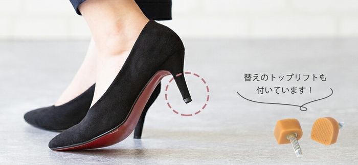 歩く時のカツカツ音を極力抑え、静音仕様のヒール先(トップリフト)を採用。強度も従来品にくらべアップ。