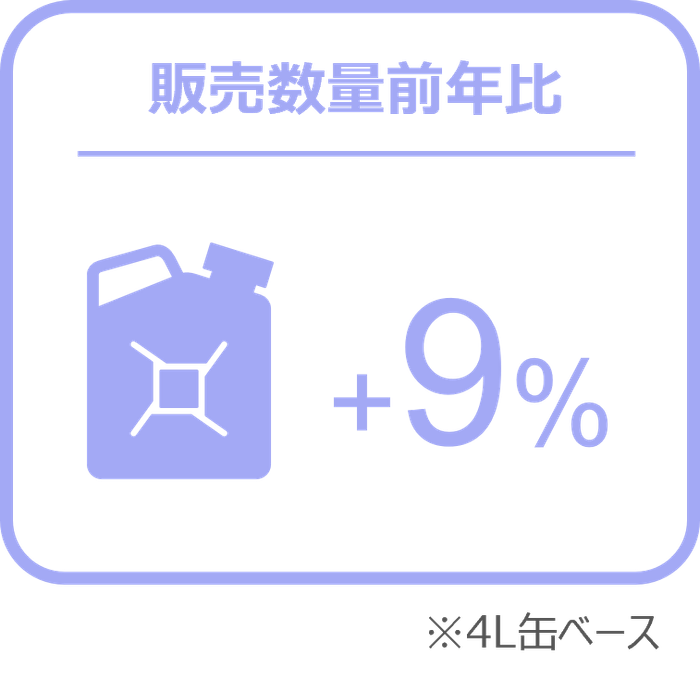 2024年11月の自動車用エンジンオイルの4L缶販売は数量前年比9%増と堅調で、店頭では同13%増であったが、インターネットでは同16%減と前年を大幅に割り込んだ。粘度別にみると、0W-20は数量前年比5%増となり、0W-16では同27%増、0W-30では同29%増に達した。ベースオイル別では、鉱物油が数量前年比16%であったことに対し、全合成油では同4%増に留まった。