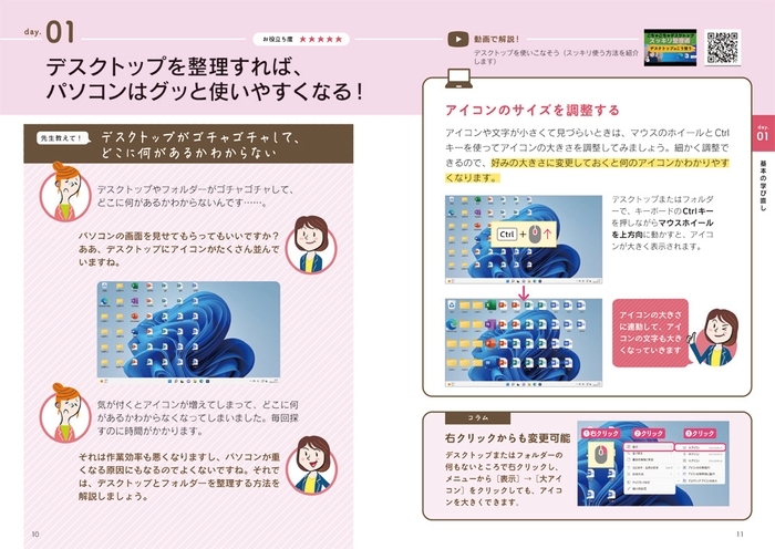PC&スマホの使い方を幅広く・わかりやすく解説する人気チャンネル「いなわくTV」の動画と連携する形で、実用的なスキルが学べる! Windows 11、LINE、Zoom、Gmailなど、多数のアプリの活用法が一挙にわかる!