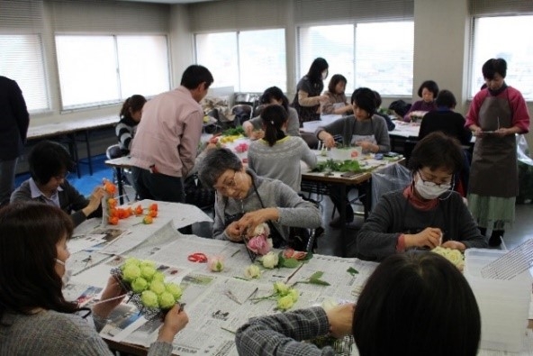 ※フラワーウォールの花はプリザーブドフラワーで作成しています。一部は2019年の11月と2020年2月のプリザーブドフラワーづくりワークショップ時に作成したプリザーブドフラワーを使用します。