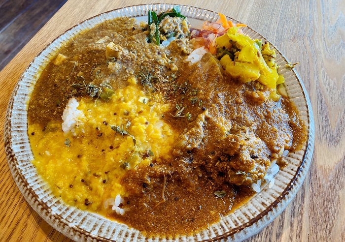 軟骨入り鶏キーマ×明太鶏キーマのあいがけカレー