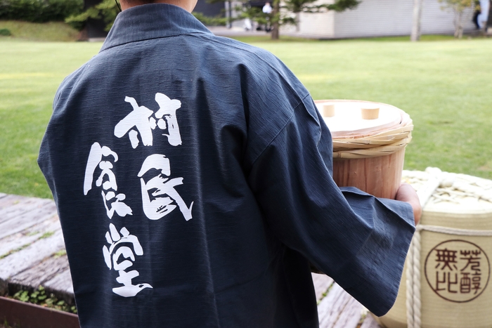 「信州佐久の酒めぐり」では、13蔵から1種類ずつ用意された日本酒を好きなだけ飲み比べできます。9月12日、13日、10月10日、11日の計4日間開催します。会場はさわやかな秋空が広がる屋外のテラス席です。鏡開きに使われる大きな酒樽が会場を彩り、雰囲気を盛り上げます。