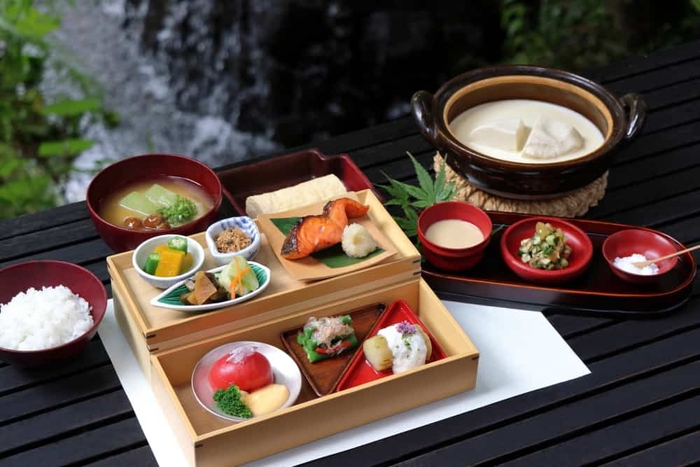 四季折々の山川の恵みをふんだんに使用している夕食「山の懐石」。素材本来の味わいを生かし、旨味が引き立つ調理法や、食材や調味料の相性を見極める「食の調和」を大切に仕立てた懐石料理です。栄養豊富な旬の食材をバランスよく味わうことで、身体を調えることができます。