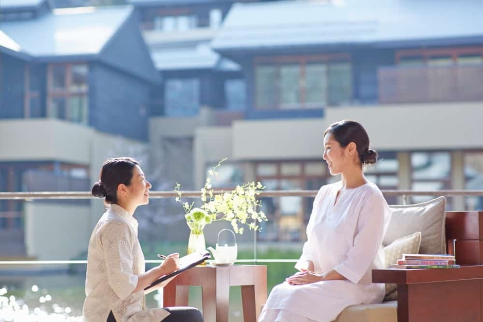 国家資格を持つ星のや軽井沢専属のあんま指圧マッサージ師による、個々の状態に合わせた施術です。今回は、身体の状態や運動量に合わせて、プログラム開催中、毎日施術を行います。日常生活で凝り固まった全身の緊張を、日ごとに段階を経て緩め、快適に過ごせるよう導きます。