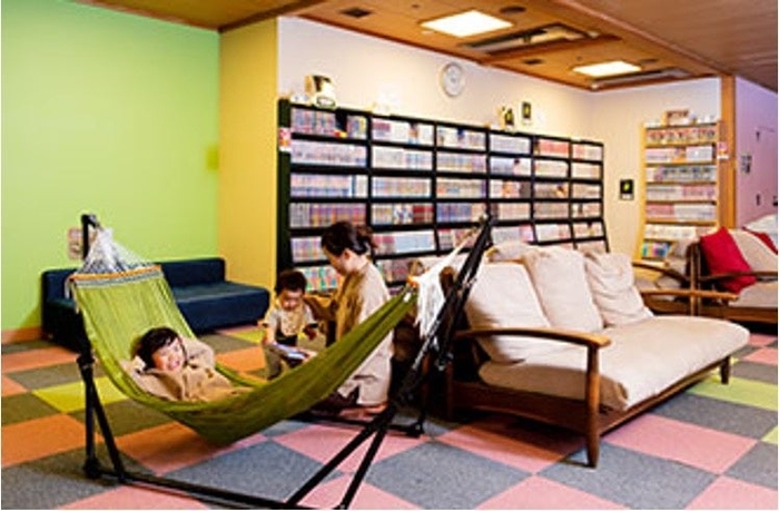 話題作から最新作、懐かしの作品まで大人も子供も楽しめるラインナップのマンガコーナー。ゆったりとしたソファやゆらゆらと揺れる感覚が心地よいハンモックなど、どっしり腰を据えて読める雰囲気が魅力で、長時間楽しまれるファミリーも大勢いらっしゃいます。