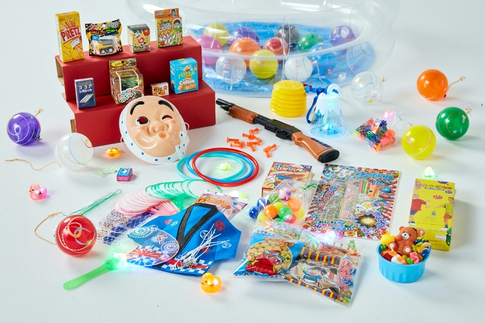 「セルフ縁日」セットは、ヨーヨー風船釣り、スーパーボールすくい、射的、輪投げ、カタヌキ、お面、光るうちわ、光るボトル、花火、駄菓子セットなど、10種類以上の祭り・縁日屋台が家庭で体験でき、クラウドファンディング「CAMPFIRE」で支援者に対するリターンとして提供します。