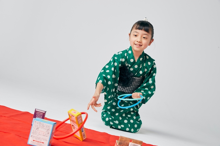 「セルフ縁日」セットは、ヨーヨー風船釣り、スーパーボールすくい、射的、輪投げ、カタヌキ、お面、光るうちわ、光るボトル、花火、駄菓子セットなど、10種類以上の祭り・縁日屋台が家庭で体験できるセットです。