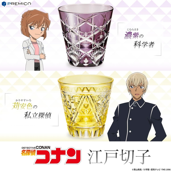 『名探偵コナン』と伝統工芸「江戸切子」の煌びやかな共演! 灰原哀と安室透をイメージした2種の江戸切子グラスが登場! プレミコから数量限定で販売開始