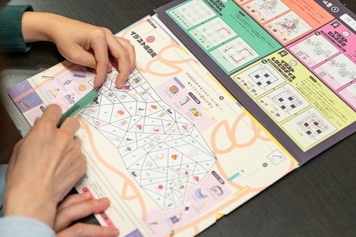収録されているイラスト謎解きパズルは全19問。イラストをしりとりでつないだり、言葉に隠された別の言葉を見つけたり、イラストとさまざまな要素を組み合わせた変わったパズルが登場します。手強いパズルを解き明かしたあとは、「ひみつのイラスト謎解きパズル」に挑戦。ヒントも充実し、どなたでも楽しめる仕様となっていますので、ぜひ最後まで解き明かし、どんな“ヤバいこと”が起こるのかご友人やご家族と見届けてください。