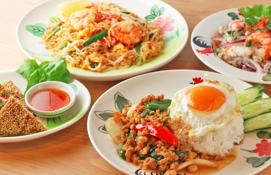 タイの屋台や食堂で人気No.1メニュー!ホーリーバジルというタイのハーブと鶏挽肉の相性がすばらしい一品。揚げた目玉焼きは必須で、半熟の黄身を混ぜながら食べるのがタイ流です。
