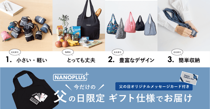 【手のひらサイズのエコバッグ「NANOPLUS」】無料で父の日にピッタリのギフトラッピングをしてお渡し!「父の日キャンペーン」を開催決定!