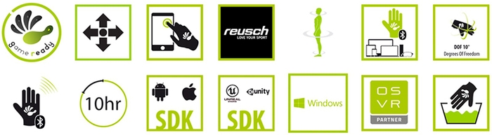 ・10DoFと指の動きのそれぞれに複数のジェスチャーを割り当てるための高度なcaptogloveスイート(手袋1つあたり20以上)