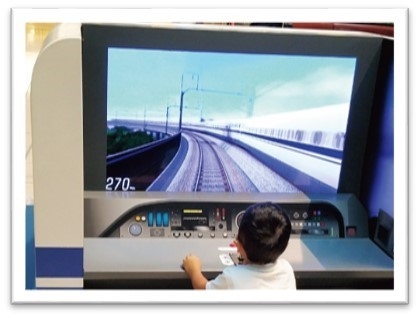 東海道新幹線の運転士さんの制服を着て本物そっくりの新幹線オブジェの前で撮影ができるほか、シミュレーターで運転体験ができます。
