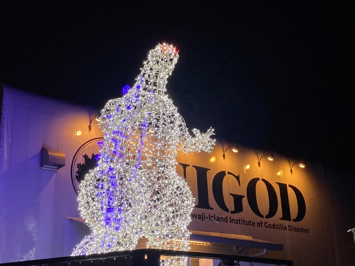 ニジゲンノモリ内にあるアトラクション「ゴジラ迎撃作戦」では、70周年を迎えた特撮映画「ゴジラシリーズ」を記念し、過去、大好評だった「ゴジライルミネーション」を、いよいよ明日11月28日(火)から2024年3月3日(日)まで、「ゴジラミュージアム」前に設置いたします。夜のゴジラは迫力満点!ニジゲンノモリに遊びに来たお客様には、全身がライトアップされた高さ3mの「ゴジライルミネーション」を観て写真を撮って楽しんでいただけます。過去実施した時からイルミネーションの色が変わり、さらに電球の数も増えてパワーアップ!