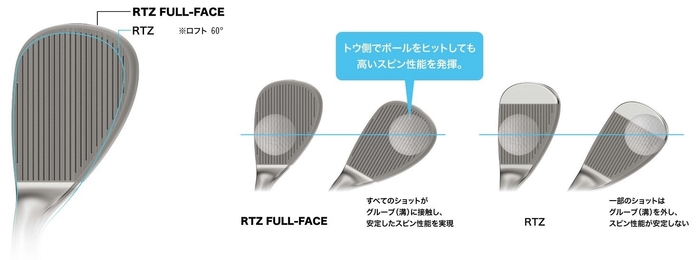 また、高精度で設計された最大21本※3の深く狭い(溝)「ULTIZIP」が強烈なスピンを生み出し、特にラフやウエット時など悪条件下でも優れたスピンコントロール性能を発揮。新素材「Z-ALLOY」と「HYDRAZIP」「ULTIZIP」の効果により、高い次元でスピン量の安定化を実現します。
