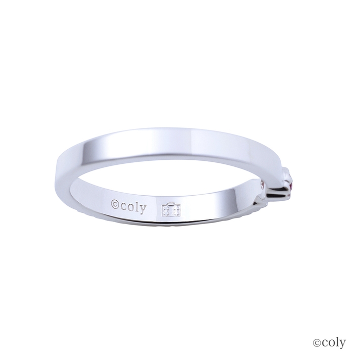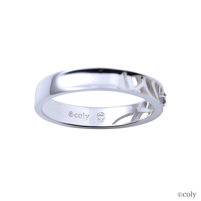 「魔法使いの約束」に登場する北の国の魔法使い、ミスラをイメージしたシルバーリングです。ミスラの腕輪をモチーフとしてリングに取り込んだ平打ちタイプのデザインに、イメージカラーストーンをセット。内側には魔道具のアイコンを刻印しました。透かしの柄が上品に身に着けられるデザインです。