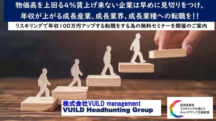 株式会社VUILD management(所在地:神奈川県川崎市、代表取締役:秋吉 正一)は、リスキリングで年収100万円アップする転職をする為の無料個別相談会を開催します。